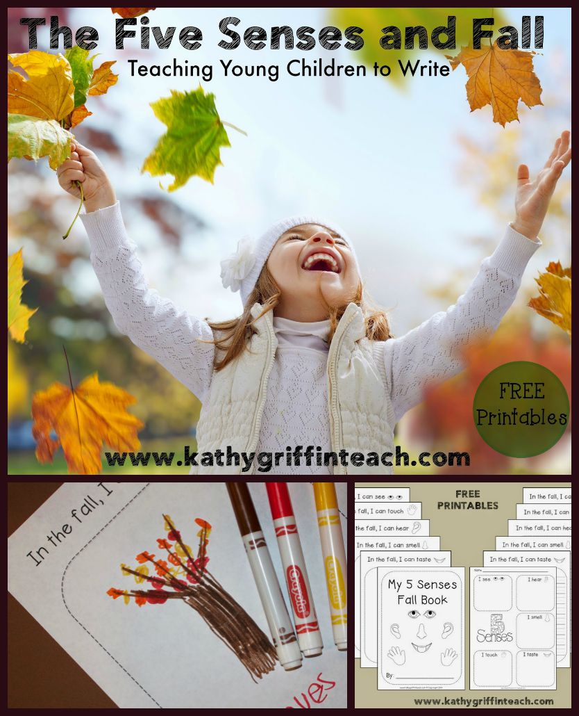 You can encourage young children to become writers by helping them have experiences to write about, conversations to build their vocabulary, and opportunities to express their thoughts in both pictures and in words.  When children uses their 5 senses, they become more empowered to use vocabulary and make connections to their writing.  And autumn is the perfect season to use our five senses to connect to writing.