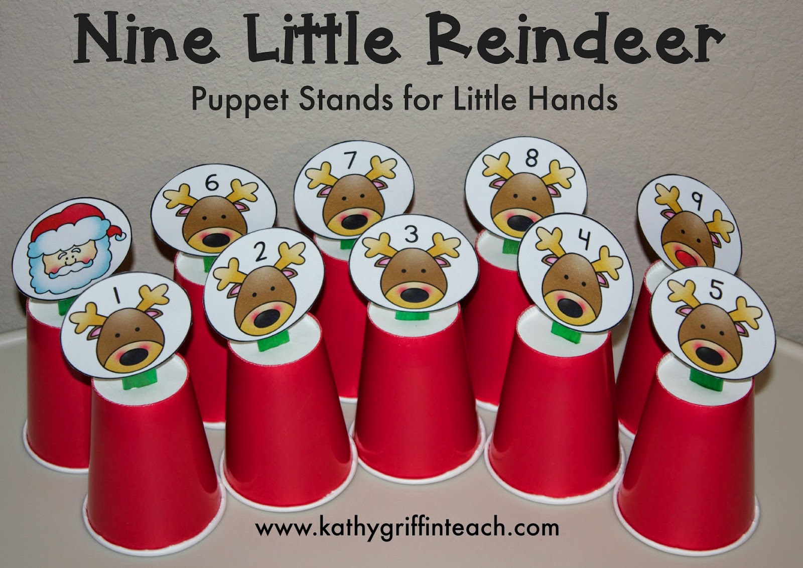 Rhymes and chants are the ideal to focus on rhyming words. Here is a new poem that I wrote about Santa and his reindeer. Nine Little Reindeer provides rhythmic fun for everyone! Teach your children this rhyme and let them become familiar with the rhythm and language. I made this prop below for whole group, small group, and as an independent literacy center. The paint stick provides great fine motor practice too, as the children use their pincer grasp to add and remove Santa and his reindeer.